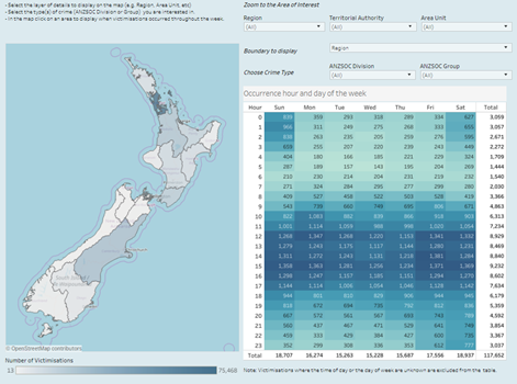 A variety of interactive reports and visualisations are accessible at https://www.police.govt.nz/about-us/publications-statistics/data-and-statistics/policedatanz including: